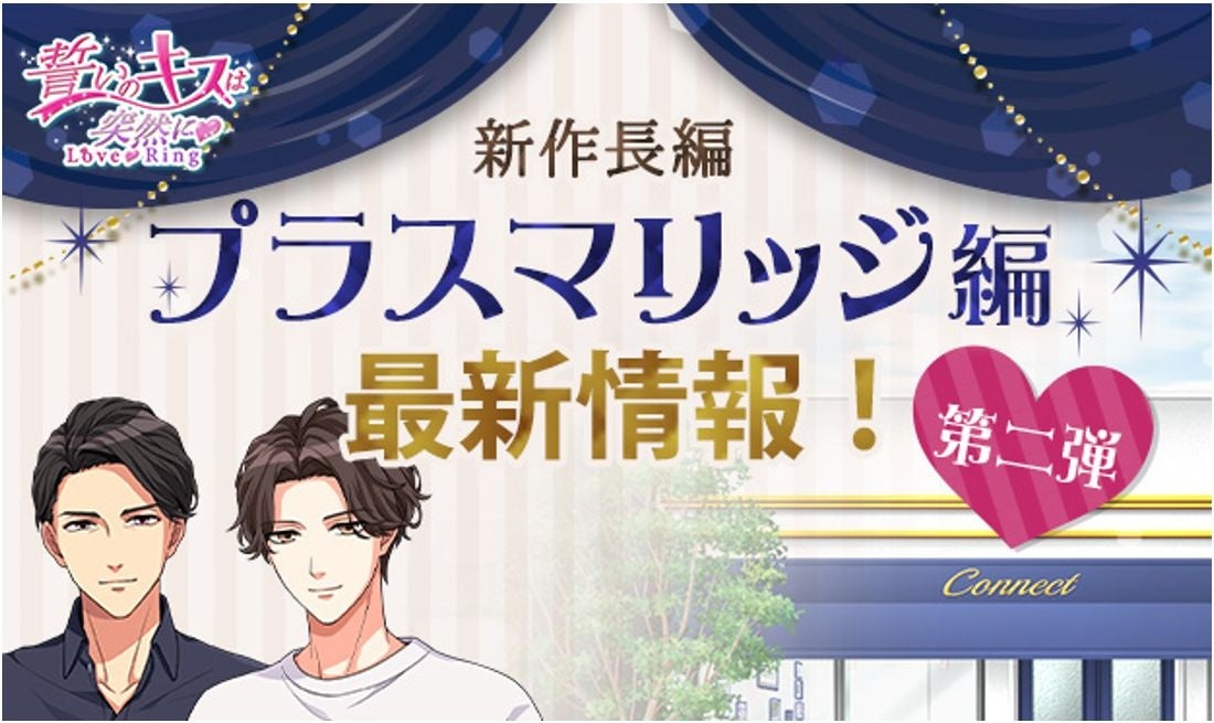 「誓いのキスは突然に Love Ring」(以下、「誓キスLR」)は、出会ったばかりのイケメンたちとの偽装結婚から始まる真実の恋を描いたボル恋タイトルで、今年6月に9周年を迎えたロングヒット作品です。新たに配信が決定したプラスマリッジ編は、「大好きなカレとの偽装の結婚生活をもう一度」をコンセプトに、現代の価値観に合わせたもう一つの“偽装結婚から始まる恋”がお楽しみいただける新作長編で、第一弾は物理教師・鴻上大和ルートを予定しております。