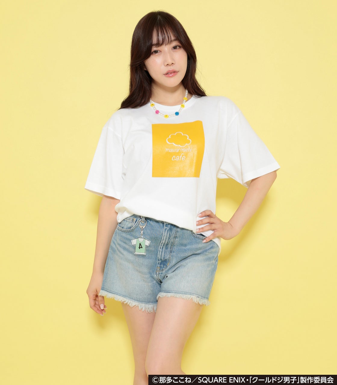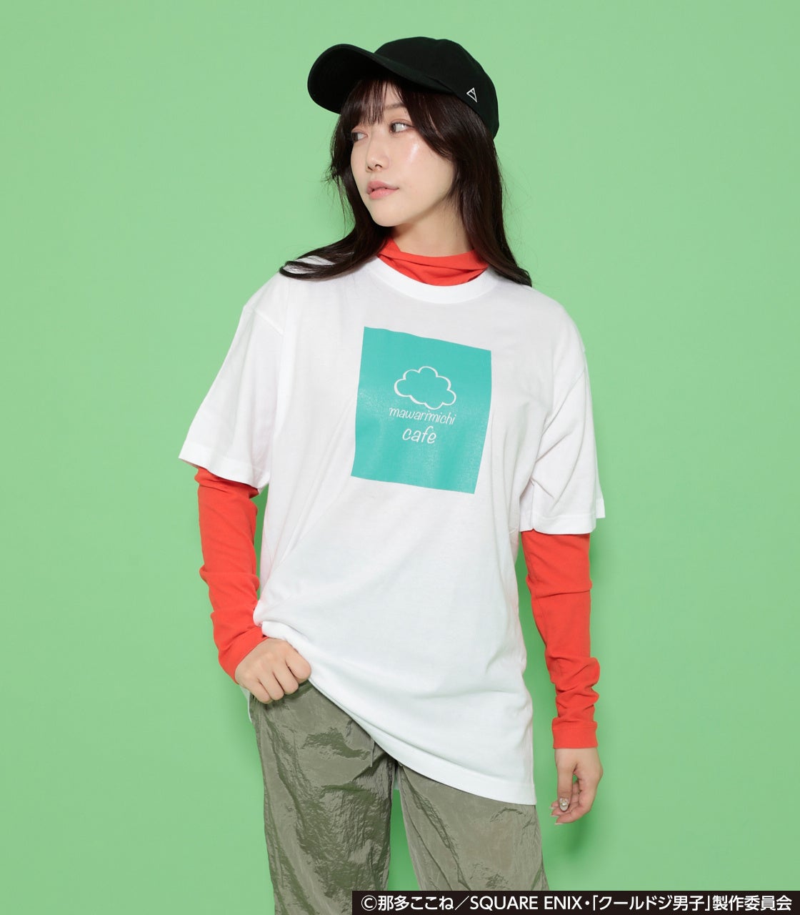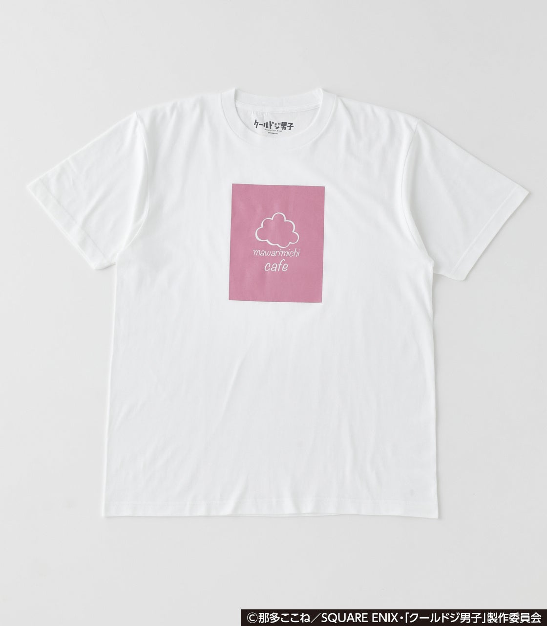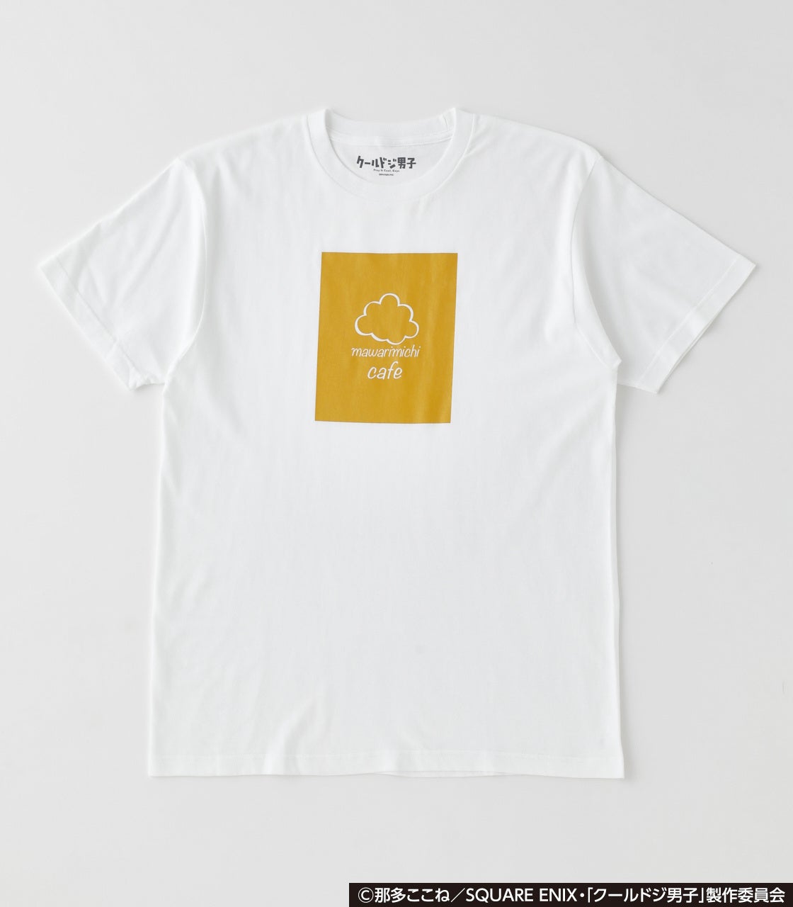 描き起こしイラストにて各キャラクターが着用している「mawarimichi cafe」Tシャツ。