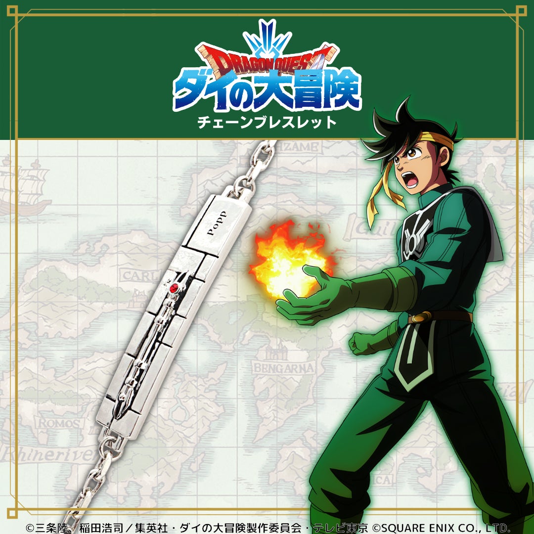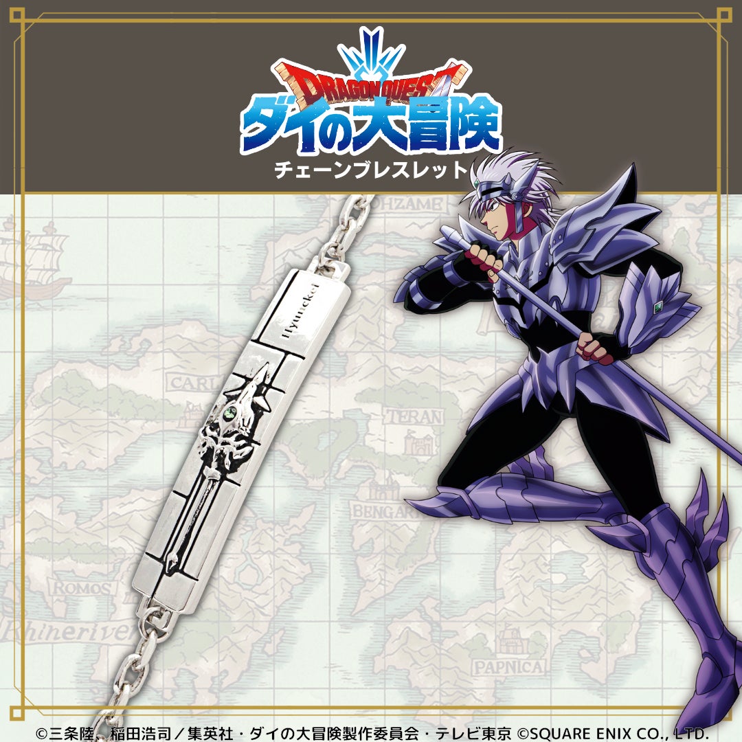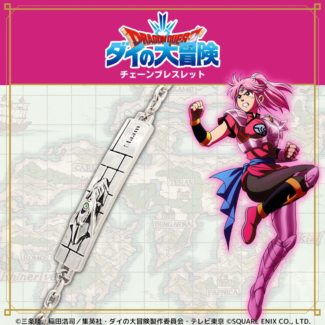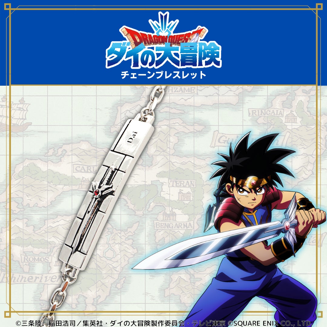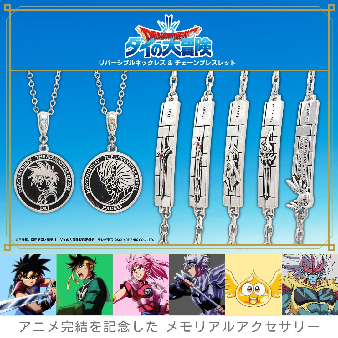 TVアニメ「ドラゴンクエスト ダイの大冒険」をイメージしたメモリアルアクセサリーは、ネックレス1種とブレスレット5種の全6種をラインナップしています。