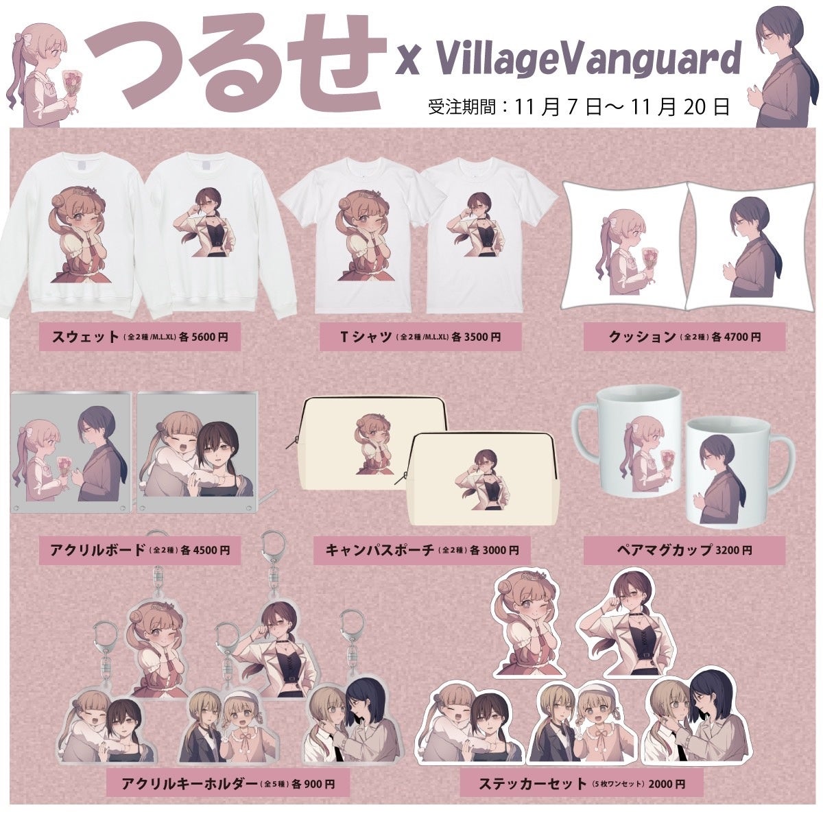 2022年11月7日(月)より、イラストレーター【つるせ】のヴィレッジヴァンガード限定グッズがオンラインストアにて完全受注販売決定!今回のためにTwitterにて掲載中の「桜の世界」のキャラクターを『つるせ』さんご本人に描き下ろしていただくという超豪華コラボグッズが誕生しました!つるせさんのこだわりもたくさんつまった今回のグッズをぜひゲットしてください!