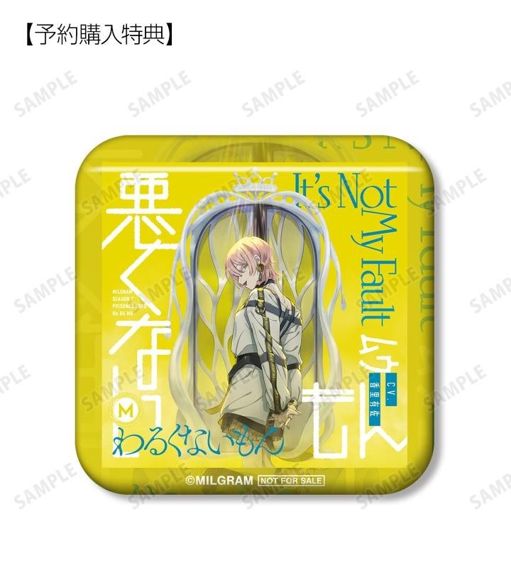 該当商品を1個ご注文ごとに、予約購入特典として「MILGRAM 第二審シングル ムウ『悪くないもん』ジャケットスクエア缶バッジ AMNIBUS特典」を付属いたします。