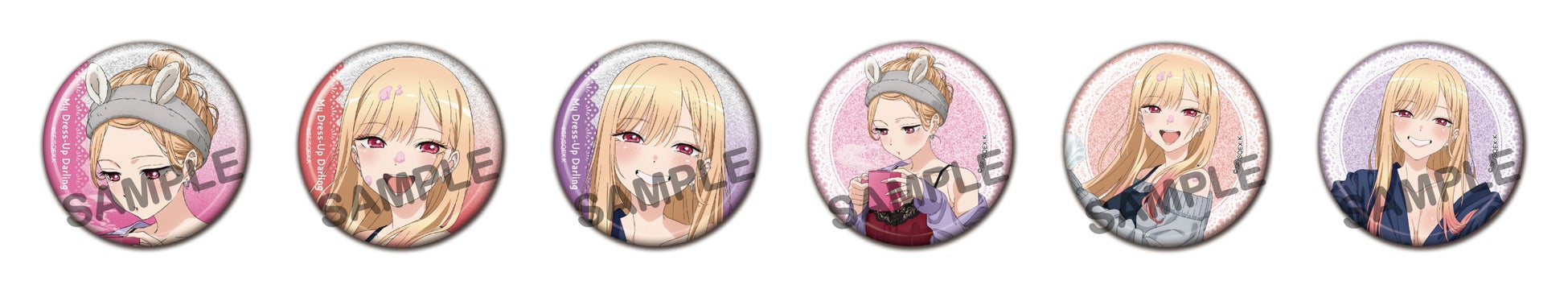 | 2. グリッター缶バッジコレクション 全6種 1個550円 56mm ※ランダム封入仕様 TVアニメ「その着せ替え人形は恋をする」の新規描き下ろしイラストを使用したラメが輝く缶バッジです。 |