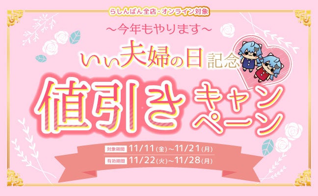 オタクらしく“推し”と一緒に「いい夫婦の日」を楽しんでいただきたいという想いから、昨年実施し、AbemaTVにも取り上げられ話題となった「いい夫婦の日記念 値引きキャンペーン」が、今年も帰ってきました!