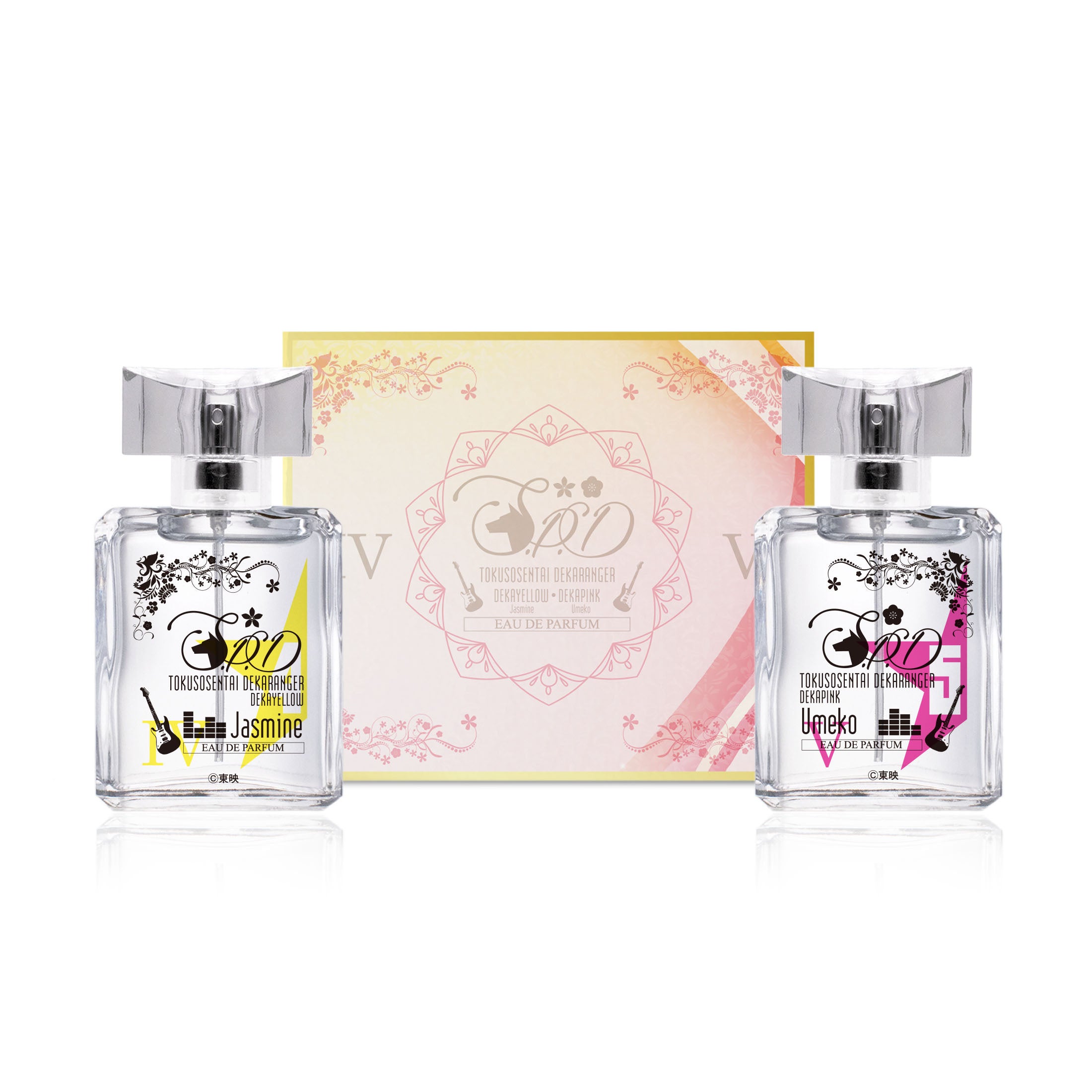 そんな本作品より、コードネームは“ジャスミン“礼紋茉莉花が変身するデカイエローをイメージした香水と、コードネームは”ウメコ”胡堂小梅が変身するデカピンクをイメージした香水のセットが発売です。
