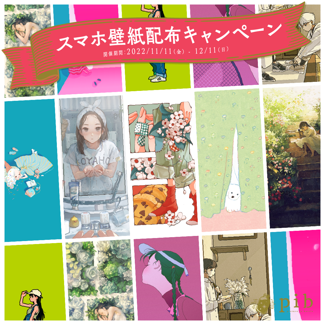 pibをご利用いただいている方および、新たにアプリをダウンロードいただいた方に、pibクリエイターの高画質「スマホ壁紙」を1枚無料配布いたします。また追加特典として、当キャンペーンをアプリ内からシェアいただくと全ての壁紙がダウンロードできるようになります。10種類のテイストの異なるクリエイター作品の中から、お気に入りの壁紙を見つけてみてください。