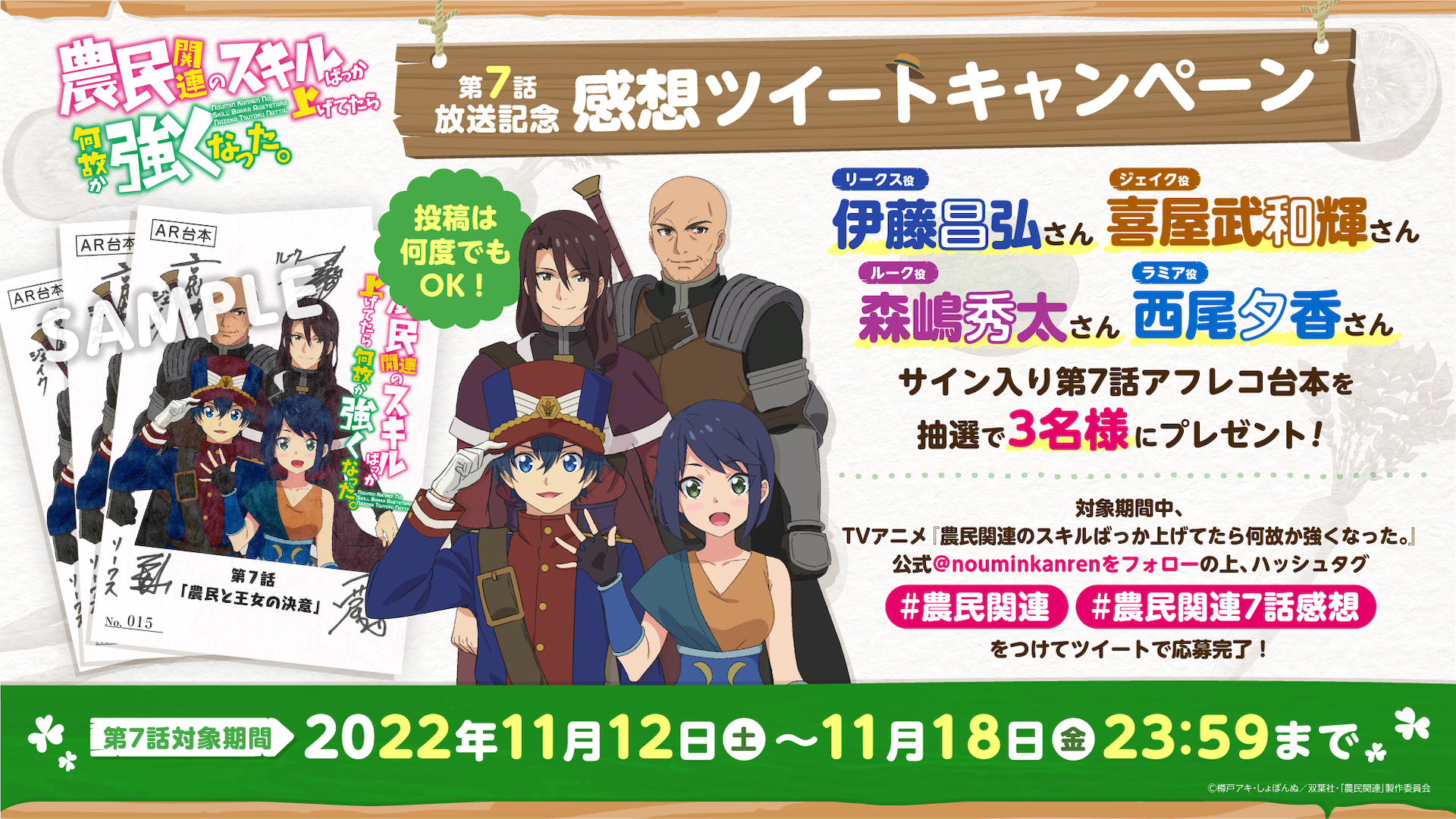 - TVアニメ『農民関連のスキルばっか上げてたら何故か強くなった。』 第7話放送記念 感想ツイートキャンペーン