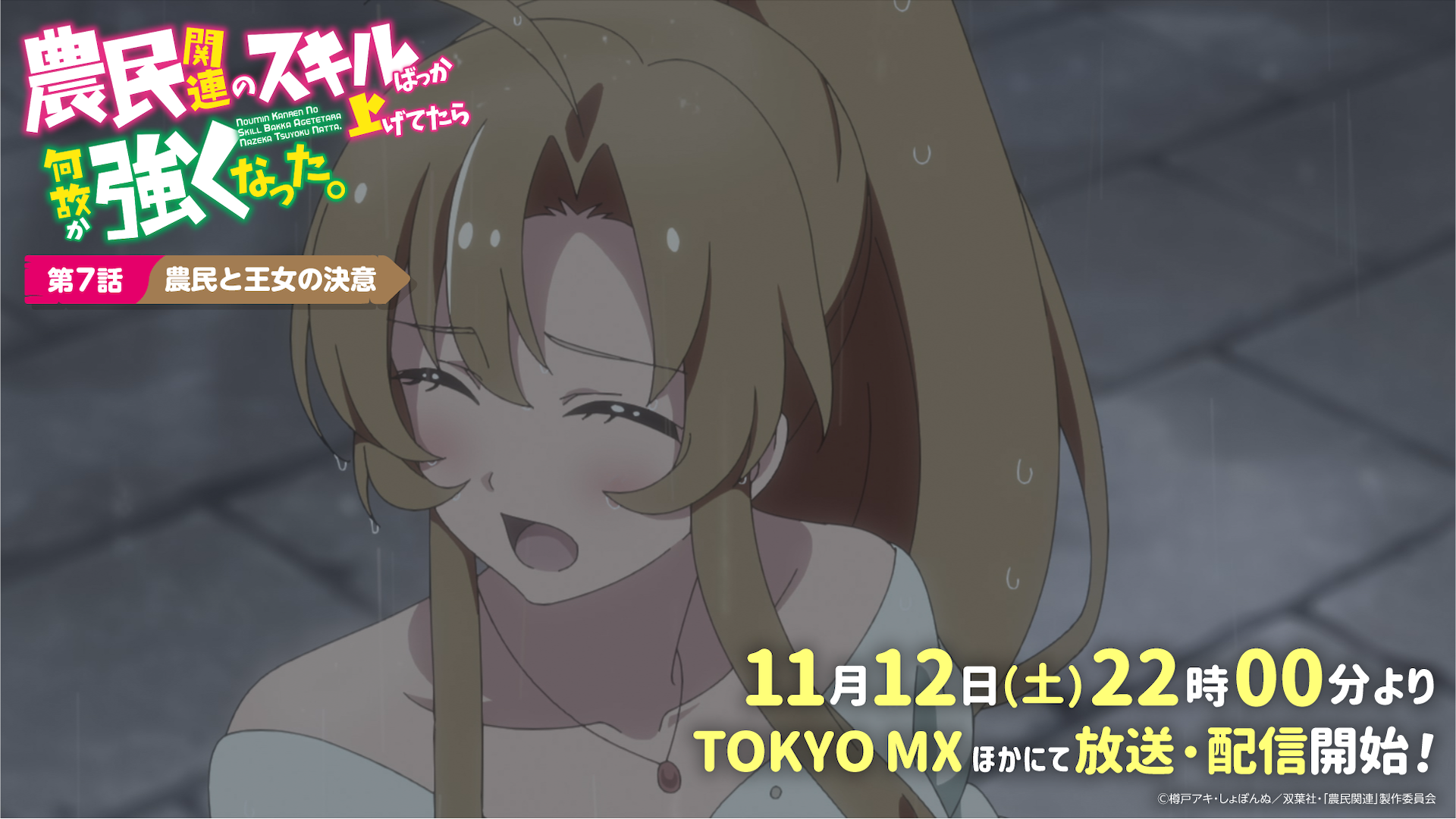 株式会社ブシロード(本社:東京都中野区、代表取締役社長:木谷高明)のグループ会社にあたる株式会社ブシロードムーブ(本社:東京都中野区、代表取締役社長:中尾祐子)は、株式会社双葉社(本社:東京都新宿区、代表取締役社長:戸塚源久)が運営するマンガ配信サービス「マンガがうがう/がうがうモンスター」にて連載中『農民関連のスキルばっか上げてたら何故か強くなった。』樽戸アキ・しょぼんぬ(双葉社 モンスターコミックス)のTVアニメ『農民関連のスキルばっか上げてたら何故か強くなった。』の第7話のあらすじ&先行カットに関する情報を公開いたしました。