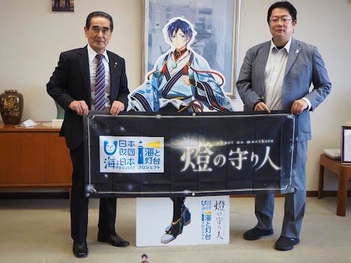 燈の守り人キャラクターを活用して、地域の灯台を歴史・文化資産として活用する機運をつくるため、キャラクター化の対象となる「御前埼灯台」が立地している静岡県御前崎市の栁澤重夫市長を、「燈の守り人」製作委員会プロデューサーの柴田英知が2022年11月4日(金)に表敬訪問し、キャラクターの贈呈式を実施しました。
