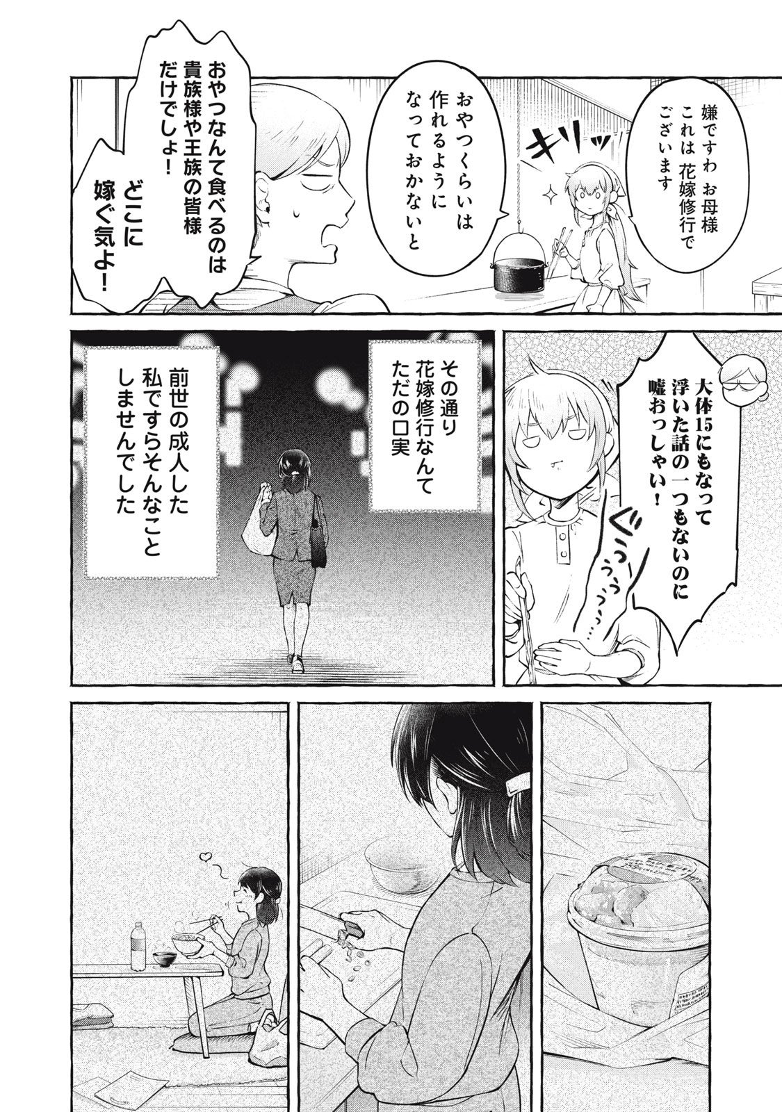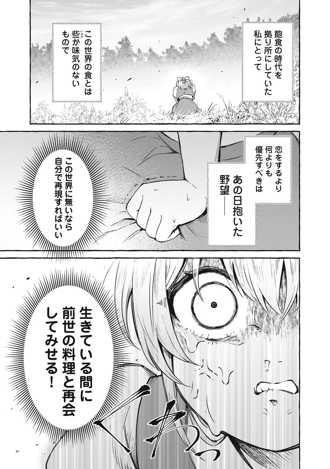 ファーストフードもラーメンもない世界に生まれ変わった、食いしん坊の少女シャーリィ。飽食の時代を懐かしみながら「美味しいものがないなら自分でつくるっきゃない!」と奮起、前世のお料理を異世界に蘇らせるべく日々料理に勤しんでいた。ところがある日、王子様の“おやつ”を作るメイドとして王宮に召し上げられることになる。B級グルメもお菓子もお手のもの! 異世界王宮お料理バトル、ここに開幕!