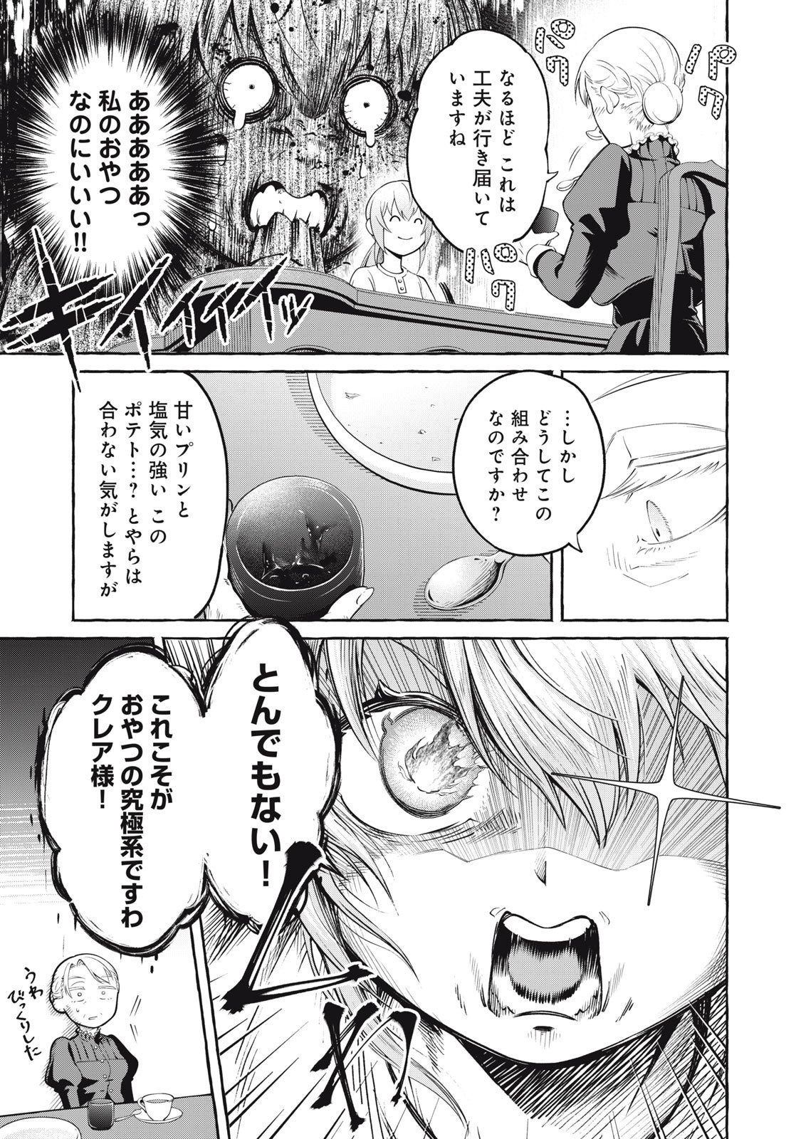 ・主人公・シャーリィの百面相が見どころの一つ! 面白いキャラたちに笑って、美味しいおやつに癒される異世界食コメディです!