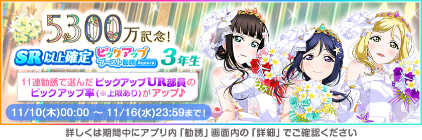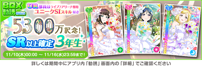 ■著作権表記:Ⓒ2013 プロジェクトラブライブ!Ⓒ2017 プロジェクトラブライブ!サンシャイン!! ©KLabGames ©bushiroad