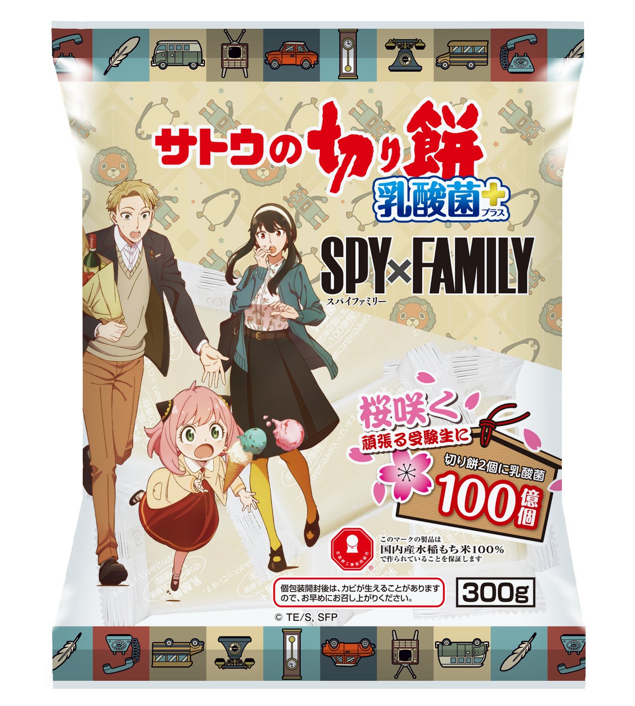 幅広い層から支持を得ているアニメ「SPY×FAMILY」のキャラクターを活かしたパッケージにより、多くのお客様に本商品を手に取っていただき、美味しく楽しくお餅を召し上がっていただくことはもちろん、受験シーズンを迎えるにあたり、受験生とそのご家族が「サトウの切り餅乳酸菌プラス」を食べることで、力をつけて健康に受験へ臨んでもらいたいという応援の想いを込めて発売を決定いたしました。