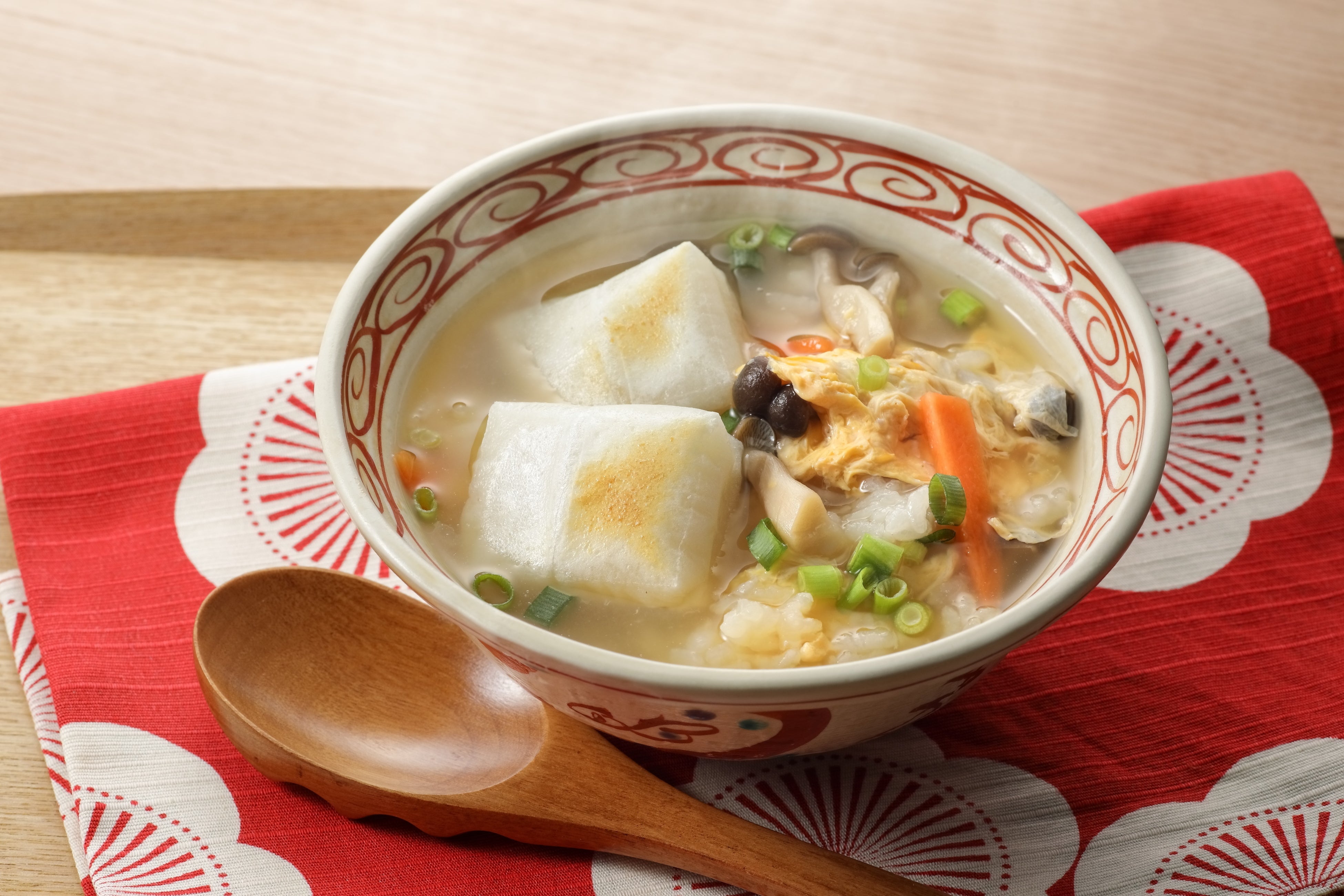「力うどん」や「もち雑炊」などをはじめ、おもちを使ったメニューは、簡単調理で、消化にも優しく、勉強に集中したい受験生の夜食にもピッタリです。