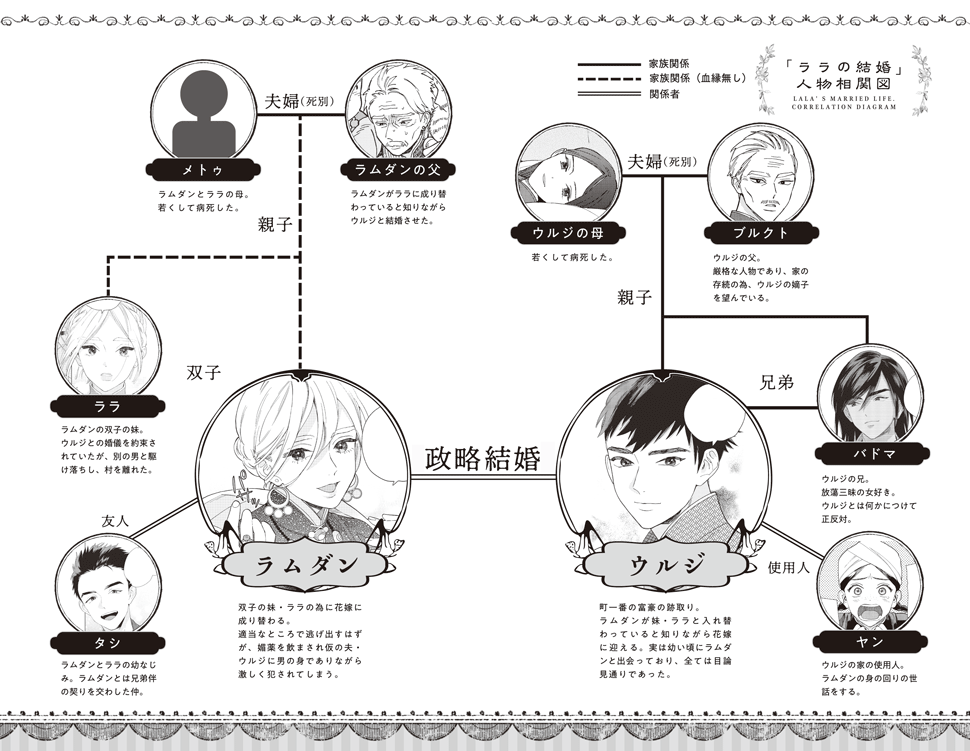 ウルジとラムダン、2人でブルクティーン家に戻って早々ブルクトにラムダンが男だということがバレてしまった。弁解の無い2人に激怒するブルクト。自分のせいでブルクティーン家が瓦解していくことを恐れたラムダンはある決意をする――異国の嫁入り奇譚5巻!