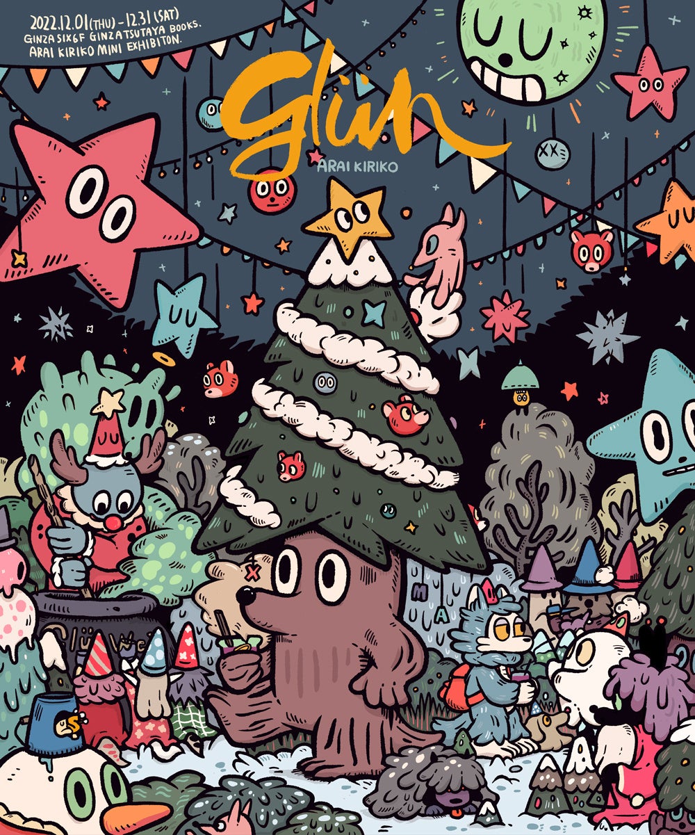 銀座 蔦屋書店(東京都中央区GINZA SIX6F)は、イラストレーター・あらいきりこの作品展「Glüh(グリュー)」を12月1日(木)~12月31日(土)の期間開催いたします。クリスマスシーズンにふさわしい新作の原画作品や、クリスマスツリー型立体作品の展示販売、新作ソフビおおかみくん「クリスマスの星」の先行発売を行います。