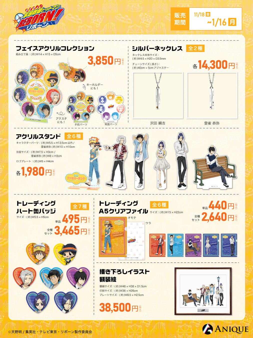 Anique株式会社 (本社:東京都渋谷区、代表取締役:中村太一) は、アニメ『家庭教師ヒットマンREBORN!』のAGFで販売したグッズのオンライン販売を11月18日より開始いたします。