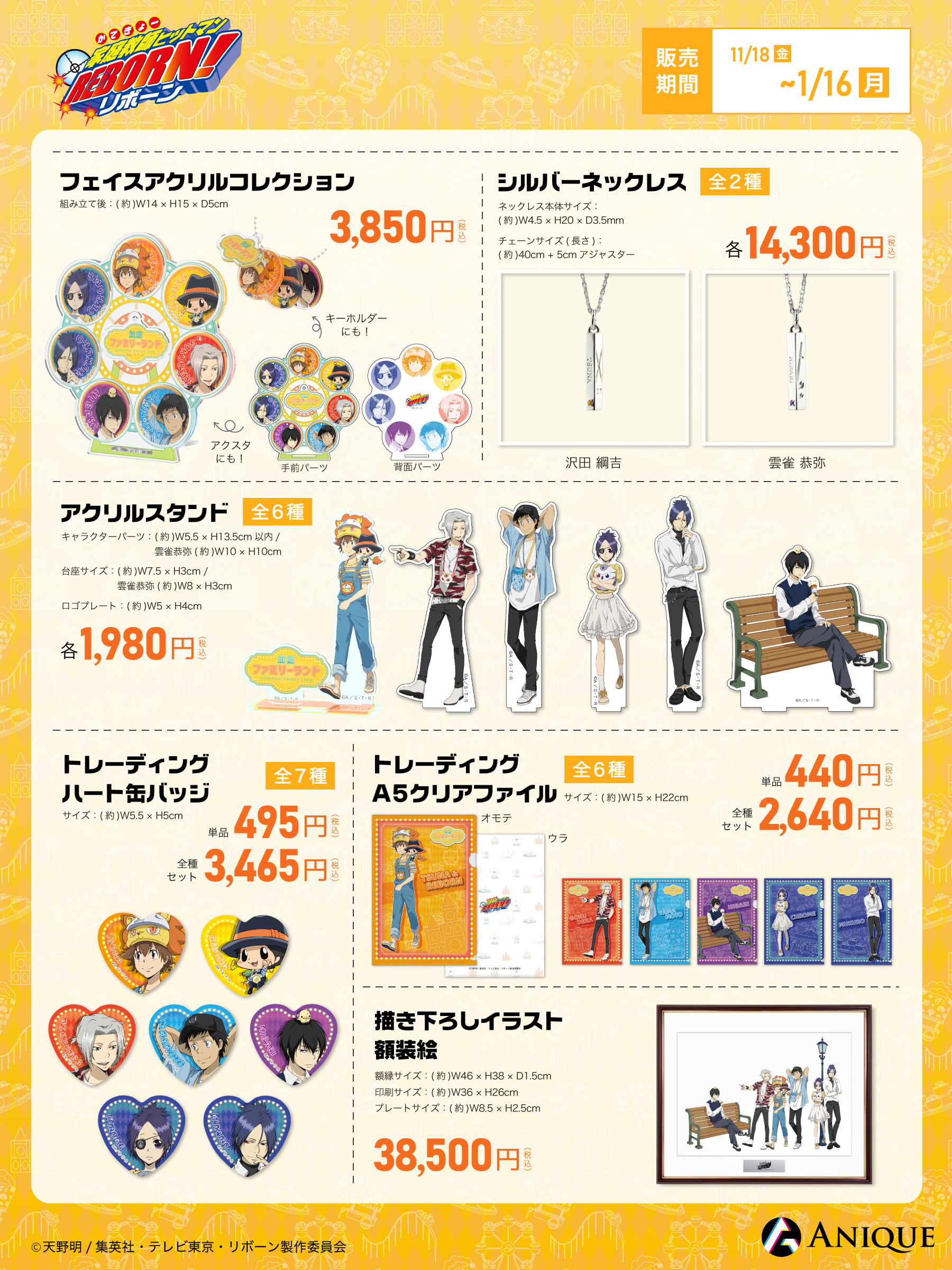 Anique株式会社 (本社:東京都渋谷区、代表取締役:中村太一) は、アニメ『家庭教師ヒットマンREBORN!』のAGFで販売したグッズのオンライン販売を11月18日より開始いたします。