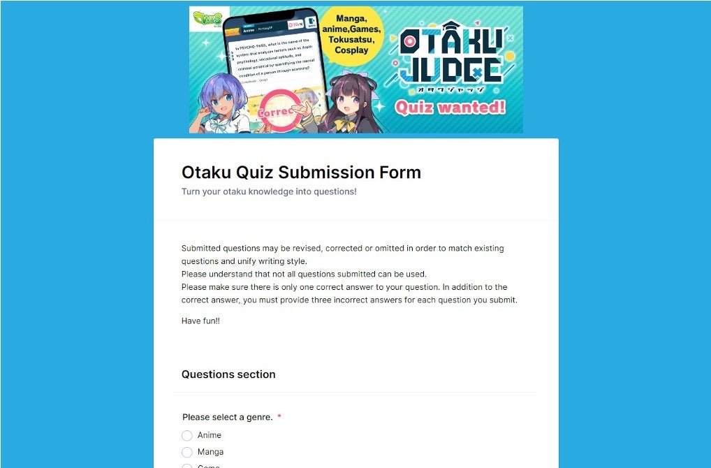 OTAKU JUDGEはユーザーのみんなで創り育てていくクイズゲームアプリです。
