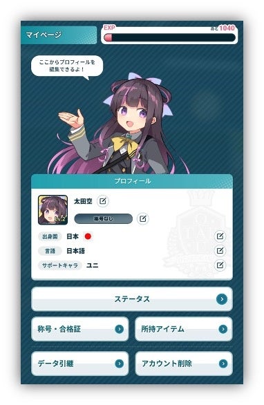 マイページからは獲得した称号、合格証一覧が確認可能。
