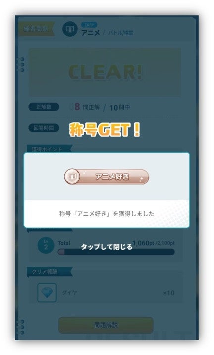 練習問題をクリアしたスピードや正解率に応じて、ポイントやダイヤを獲得できます。