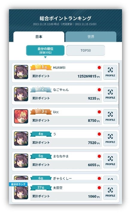 プレイに応じて様々な称号を獲得!プロフィールに設定ができます。