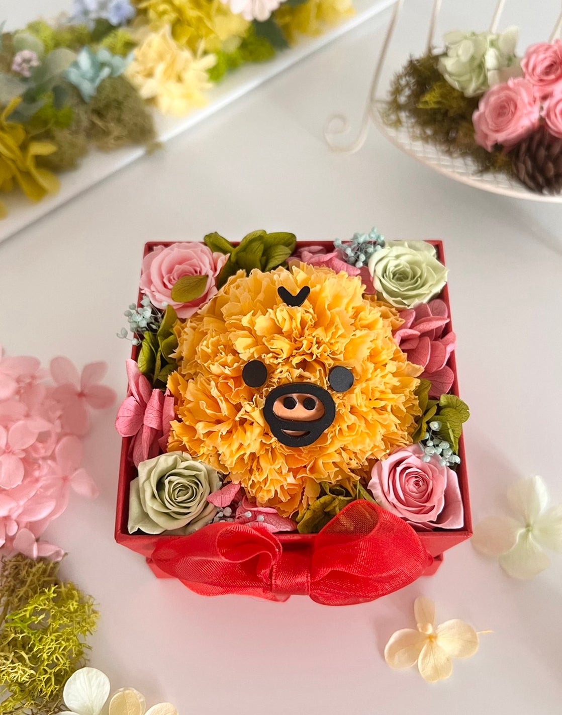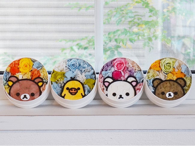 今回登場したキイロイトリのキャラクターフラワーは、マイペリドット店主がリラックマファンであったことから企画し、2020年12月に発売したリラックマのキャラクターフラワーBOX「ごゆるり リラックマフラワー」の続編となるもの。リラックマの人気者のお友だち・キイロイトリをフィーチャーし、生花を特殊加工した枯れないお花・プリザーブドフラワーだけを使って立体タイプを含む以下の3種類を制作いたしました。
