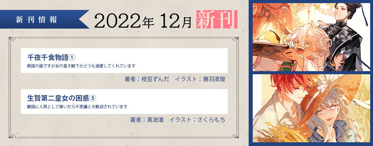 人気シリーズ『生贄第二皇女』、さらに新作『千夜千食物語』が登場!