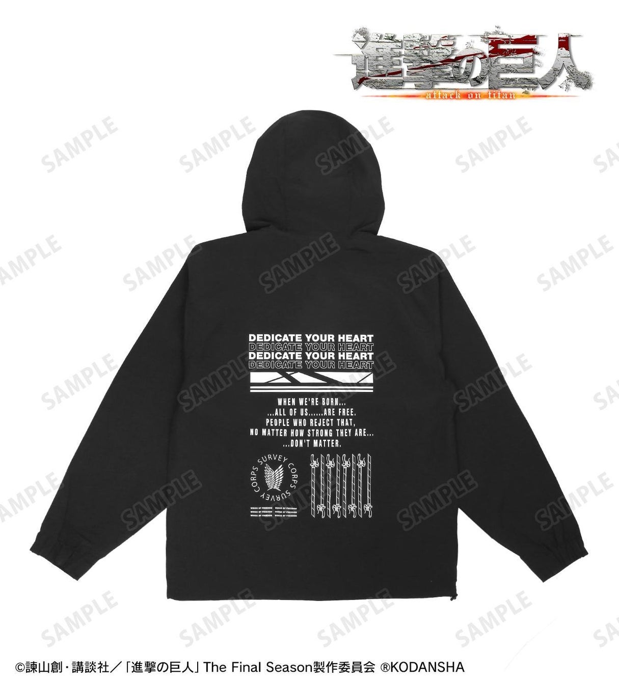 調査兵団のマーク、立体機動装置、「心臓を捧げよ」など印象的なフレーズをメインにデザインしました。