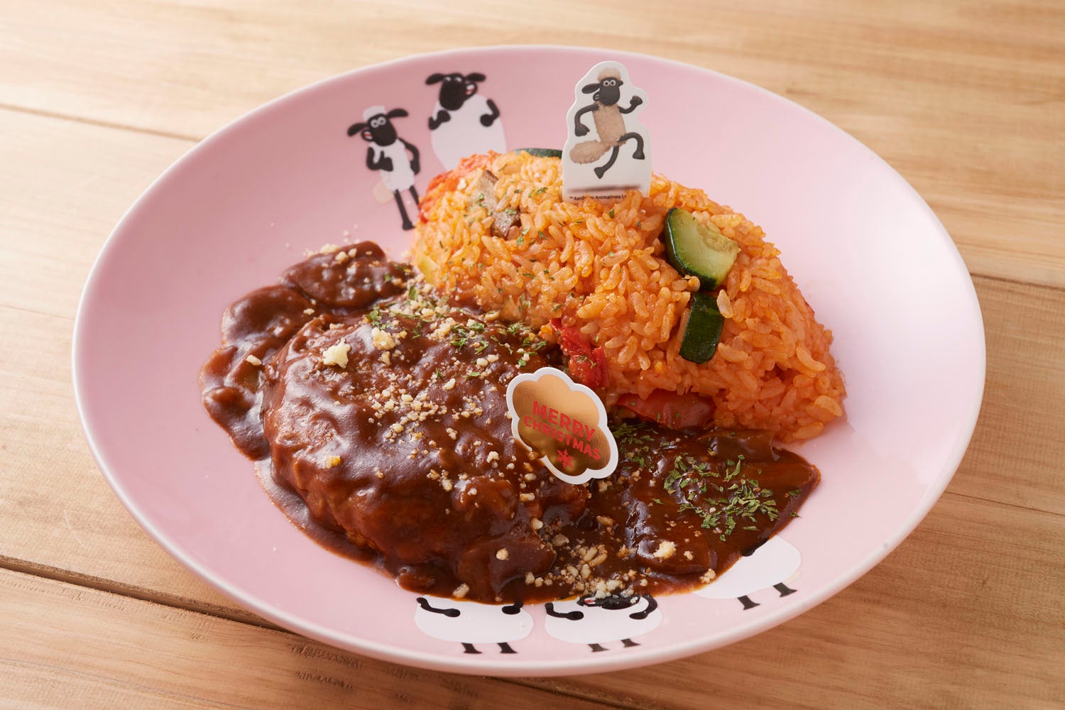 デミグラスソース仕立てのやわらかハンバーグに野菜たっぷりチキンピラフを添えたカフェ特製のクリスマスプレートです。
