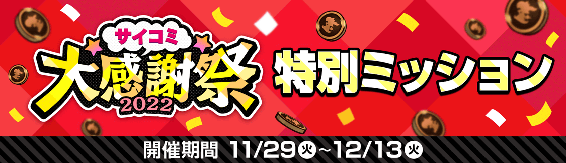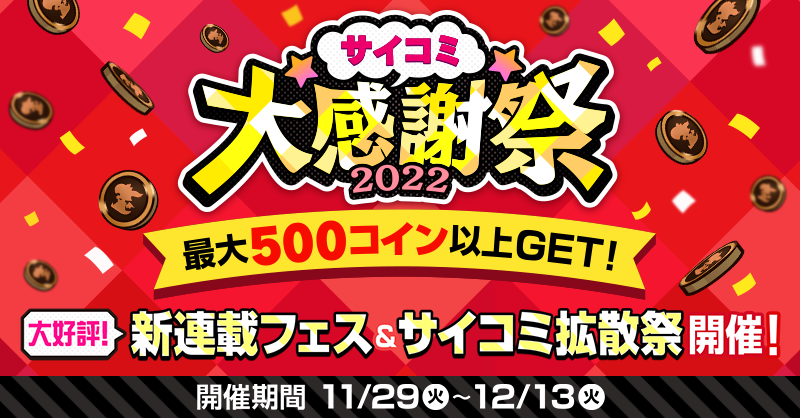 株式会社Cygames(本社:東京都渋谷区、代表取締役社長:渡邊耕一)は、スマートフォン・PC向け漫画サービス「サイコミ」において、11月29日(火)から大型イベント『サイコミ大感謝祭2022』を開催します。