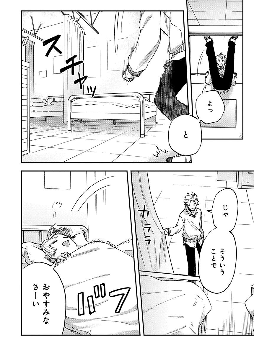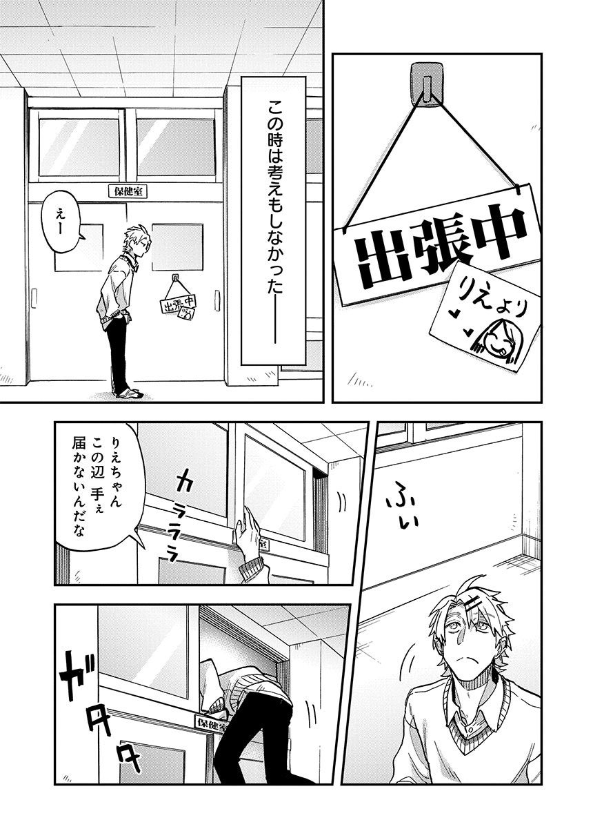 いつものように授業をサボって保健室のベッドで寝ていたら、後から入ってきた堅物の数学教師、白峰と地味だけど美しい男子学生、野田が隣で激しいセックスが始めてしまう。