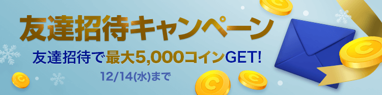 ⑤友達招待で最大5,000コイン/ポイントゲット!招待された人もゲットのチャンス!「友達招待キャンペーン」