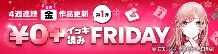 概要:12月の毎週金曜日(2,9,16,23)に1日12話無料で読める「¥0+」に有名作品が追加されます。