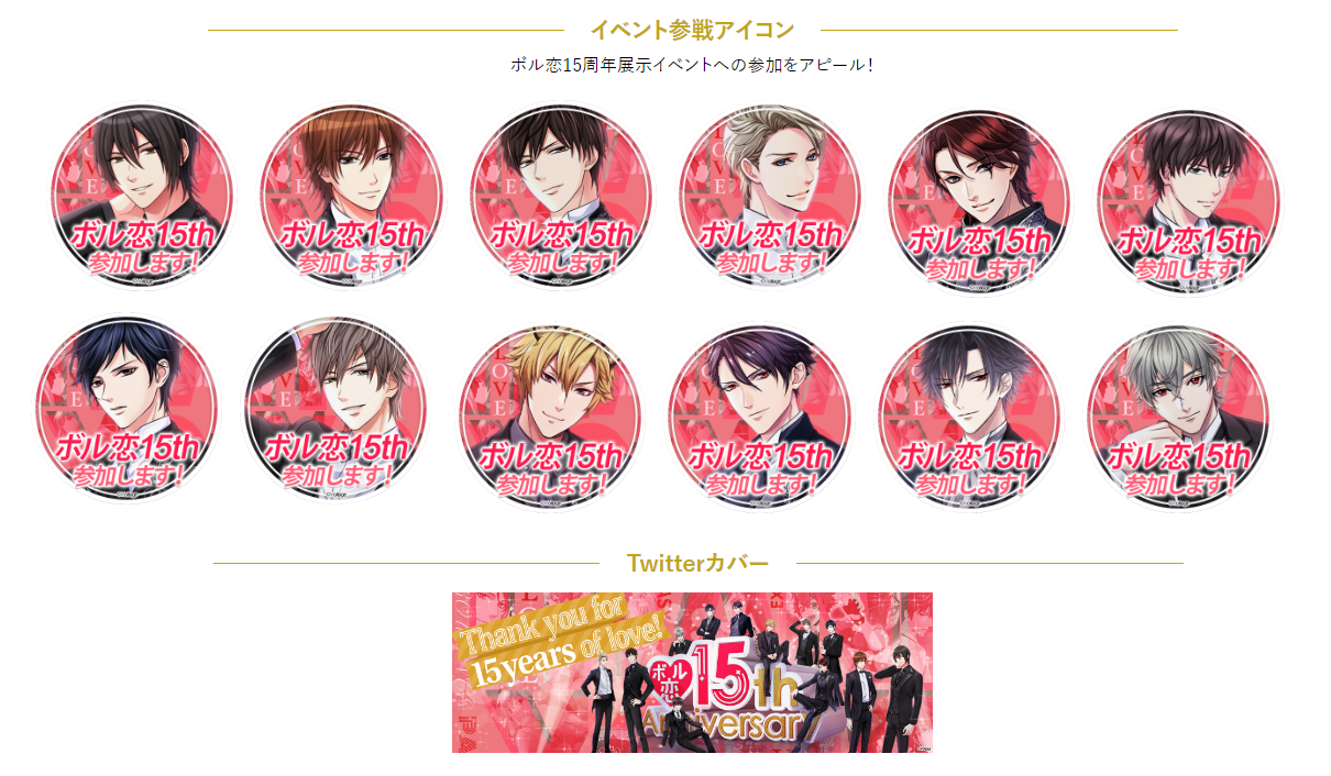 ボル恋15周年を記念して、特設サイトではSNSアイコンやヘッダーを皆様にプレゼントしております。無料でダウンロードできますので、15周年の記念にぜひお受け取り下さい。