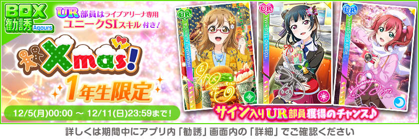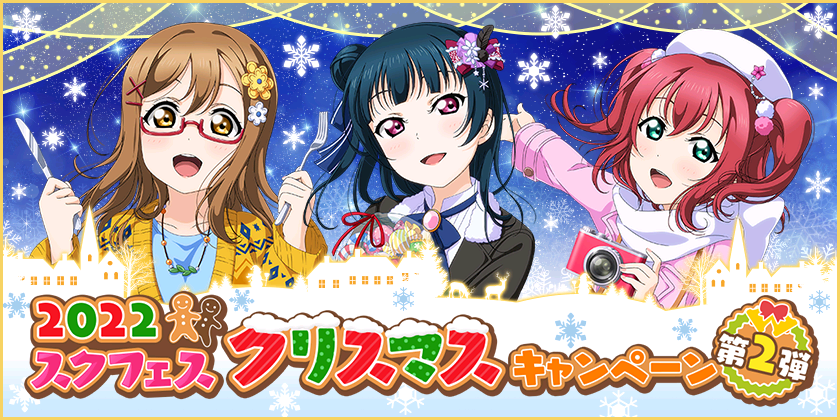 株式会社ブシロード(本社:東京都中野区、代表取締役社長:木谷高明)は、KLab株式会社(本社:東京都港区、代表取締役社長:森田英克)と共同開発いたしましたスマートフォン向けアプリ『ラブライブ!スクールアイドルフェスティバル』(以下、スクフェス) において2022スクフェスクリスマスキャンペーン第2弾の開催をお知らせいたします。