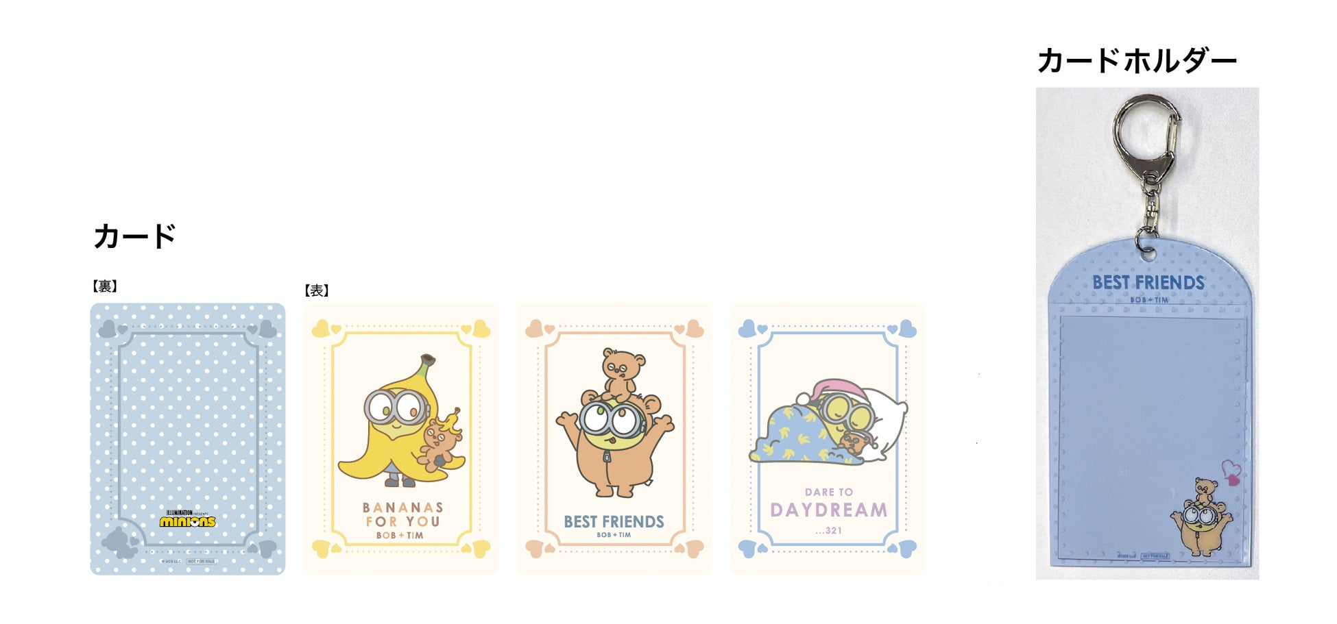 POP UP限定デザイングッズはもちろんバナナを愛するミニオンたちの世界観がたっぷり詰まった商品を多数販売。『怪盗グルー/ミニオンズ』シリーズに登場するミニオンたちの中で、とっても優しくてひとなつっこい性格のボブと、彼にとってくまのぬいぐるみの相棒ティムの商品をたくさん用意しています。