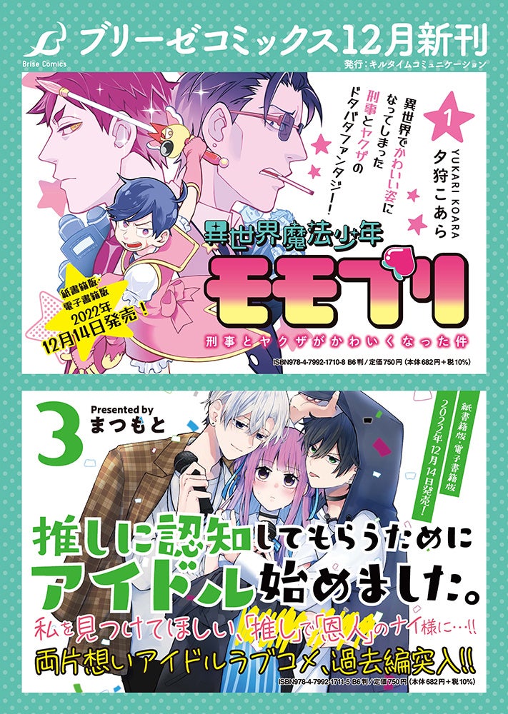 12月は『推しに認知してもらうためにアイドル始めました。3』と『異世界魔法少年モモプリ~刑事とヤクザがかわいくなった件~1』の2作品が発売!