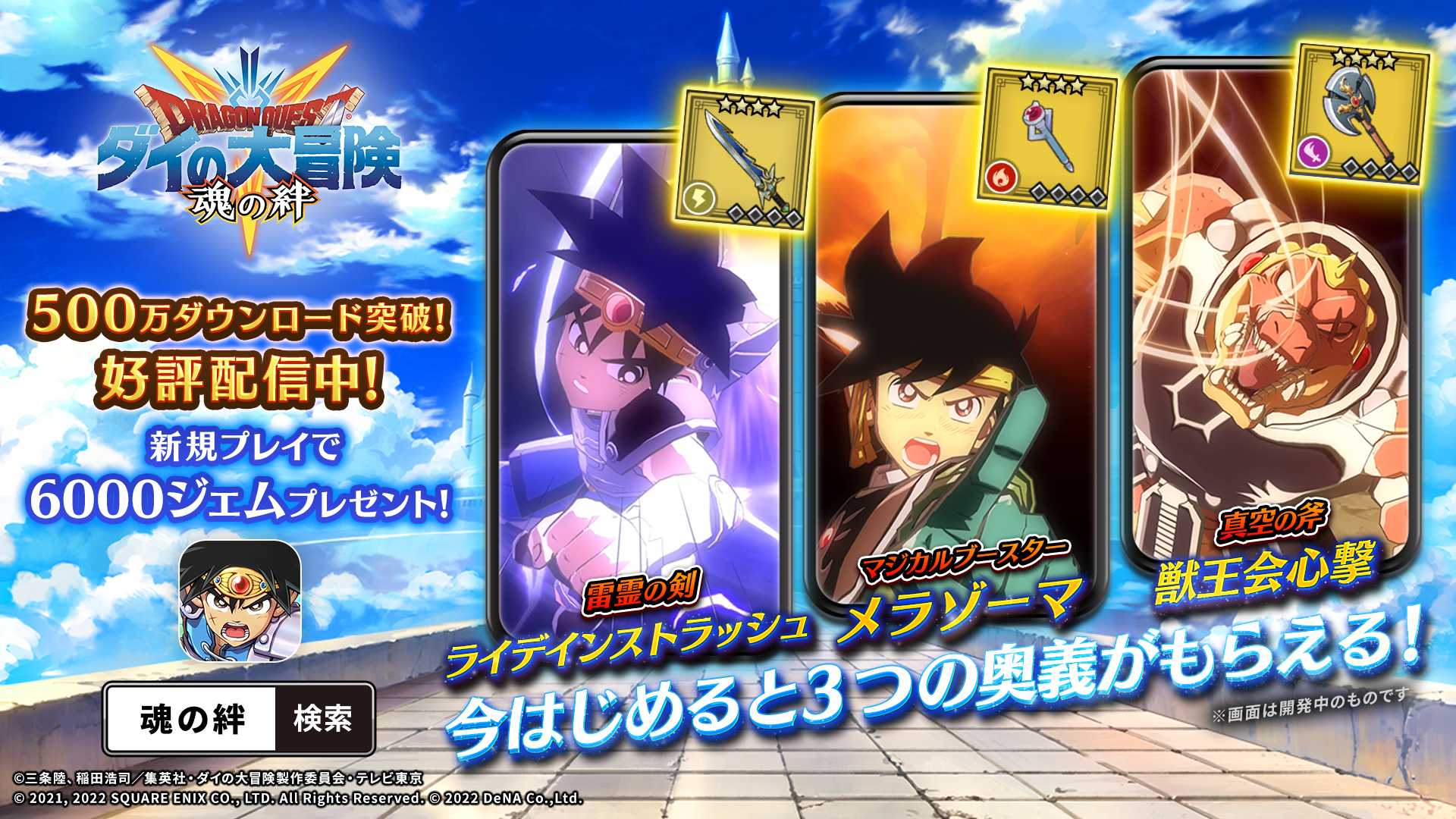 スマートフォン向け爽快”大爆進”RPG「ドラゴンクエスト ダイの大冒険 –魂の絆-」が現在好評配信中!