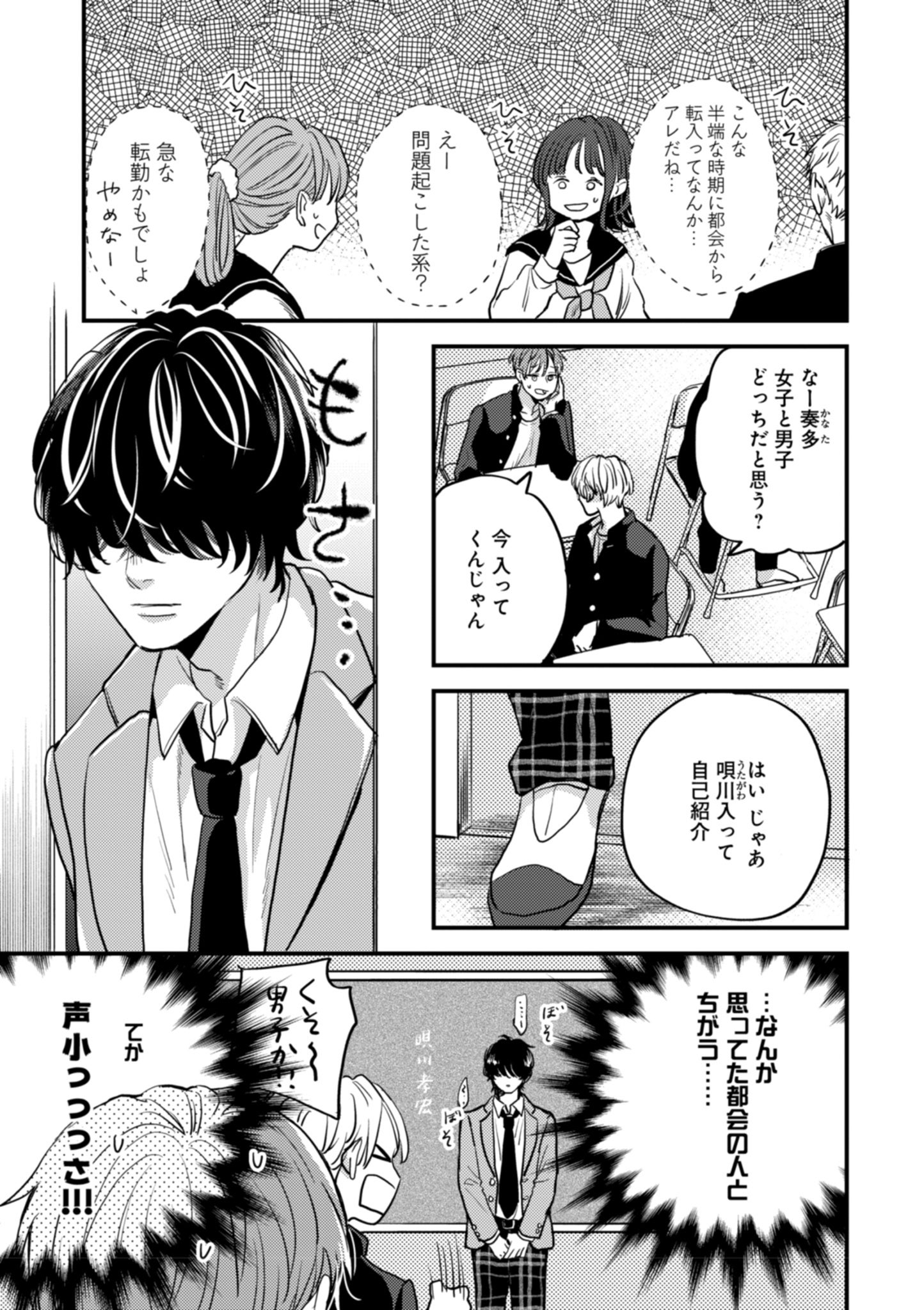 高1。東京から来た転校生。不愛想でコミュニケーションに難あり。前髪で顔がほぼ見えないが、実はイケメン。