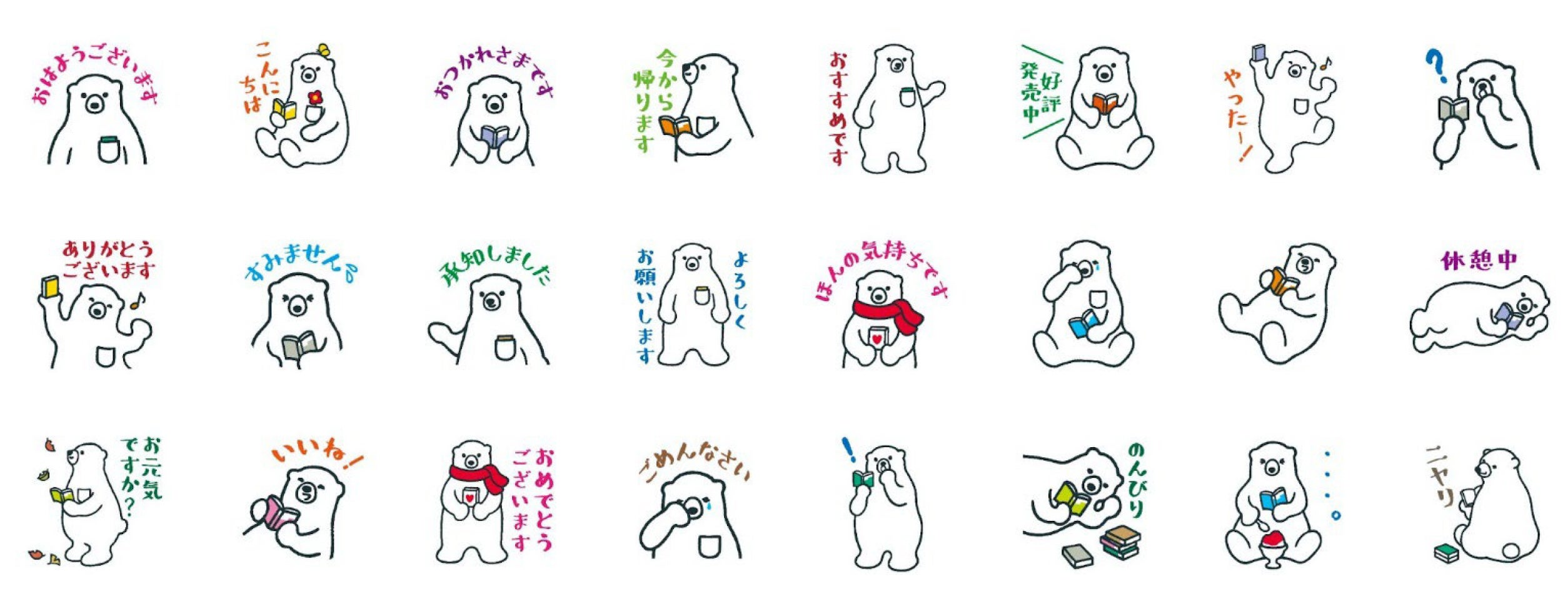 全24種類、ややきちんと感ただようひと言が「しろくまフォント」で添えられた、使いやすいスタンプです。