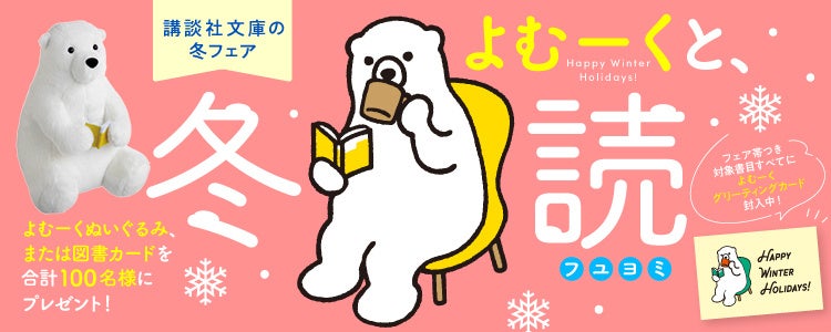 さらに、ただいま書店店頭では、「講談社文庫の冬フェア よむーくと、冬読(フユヨミ)」も開催中。フェア帯の巻かれた対象作品をお買い求めいただくと、もれなくよむーくのグリーティングカードを、さらに帯についている応募券で、合計100名様によむーくグッズをプレゼント!