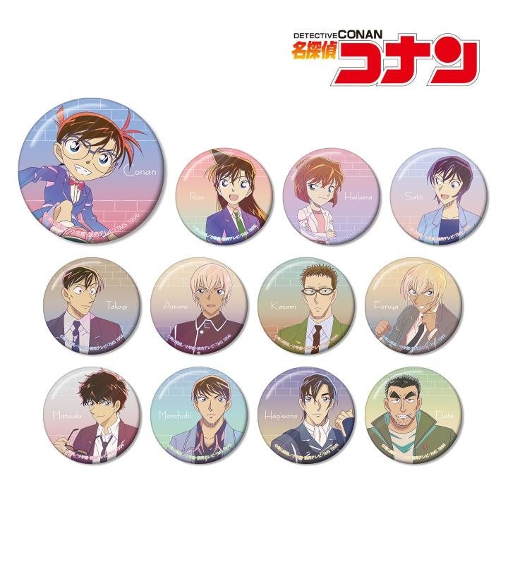 江戸川コナン、毛利蘭、灰原哀、佐藤美和子、高木渉、安室透、風見裕也、降谷零、松田陣平、諸伏景光、萩原研二、伊達航を新たなタッチで魅力的に表現し、缶バッジに仕上げました。