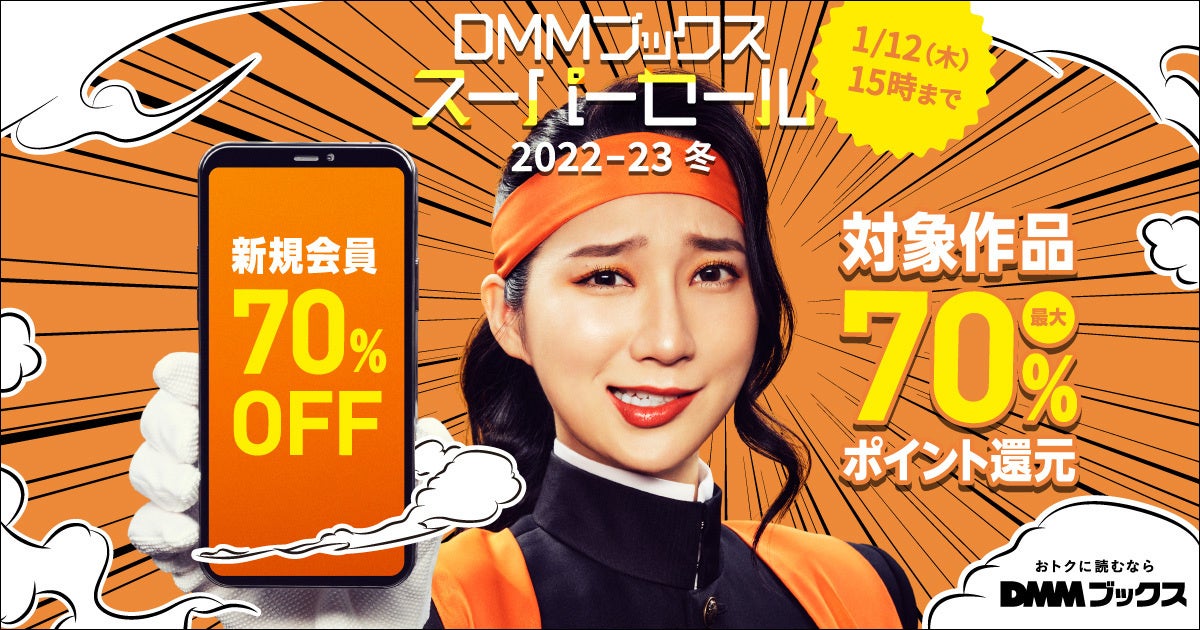 合同会社DMM.com(本社:東京都港区、会長 兼 CEO:亀山敬司 以下「DMM」)が展開する電子書籍サービス「DMMブックス」(https://book.dmm.com/)は、「DMMブックス スーパーセール 2022-23 冬」を2022年12月15日(木)から2023年1月12日(木)まで開催いたします。セール期間中は最大70%ポイント還元、ほぼ全作品がセール対象となります。さらに、初めてDMMブックスでご購入いただく方には70%オフクーポンをプレゼント。Twitterでは総額150万円分相当の商品をゲットできるキャンペーンも実施します。