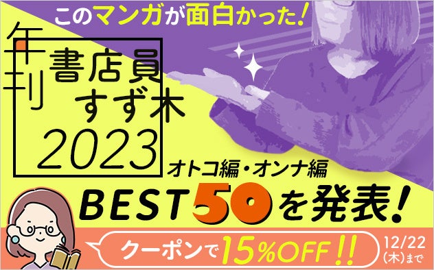 キャンペーン内容:「年刊 書店員すず木2023」特集ページにて、掲載されている対象作品が15%OFFになるクーポンを配布します。