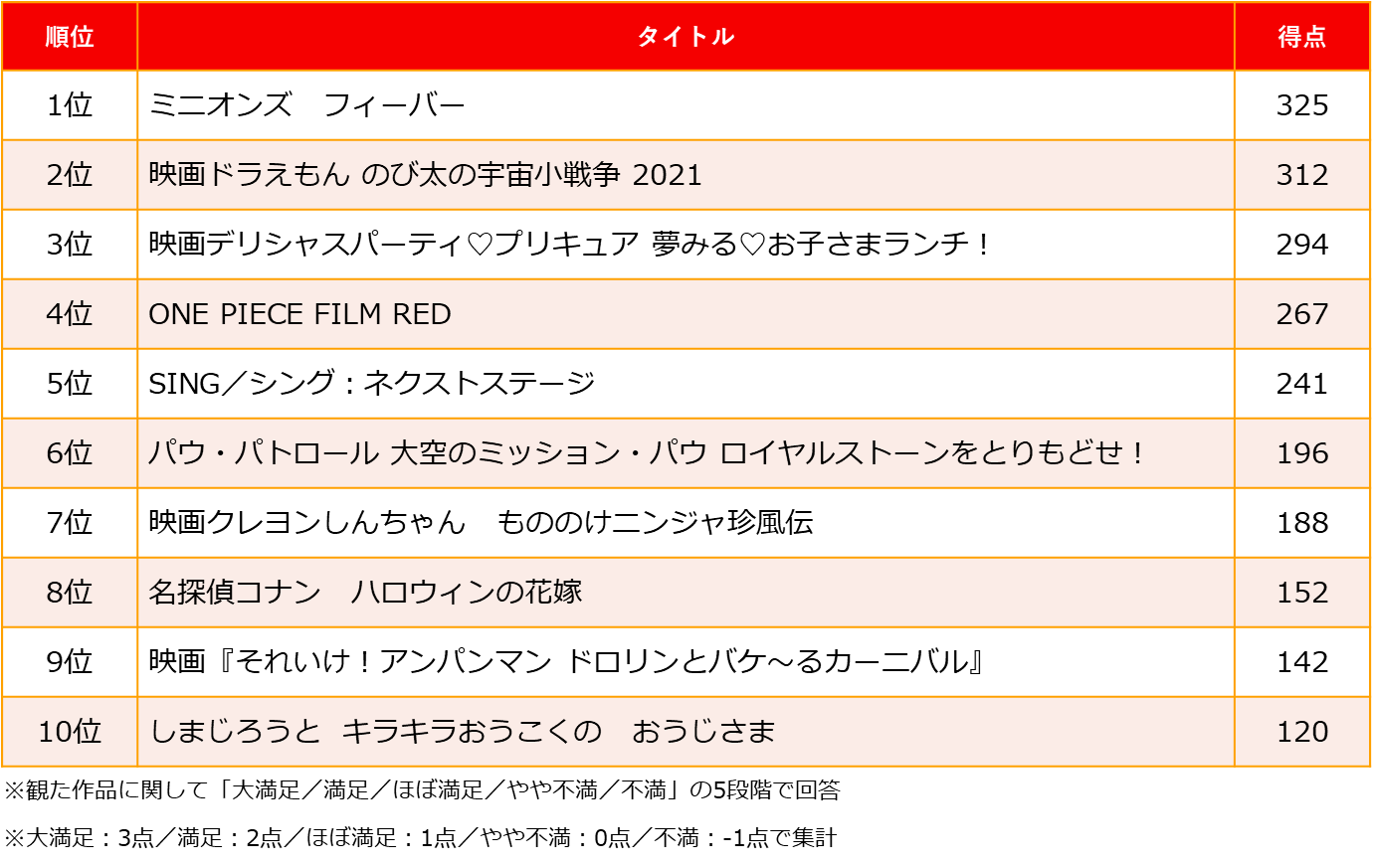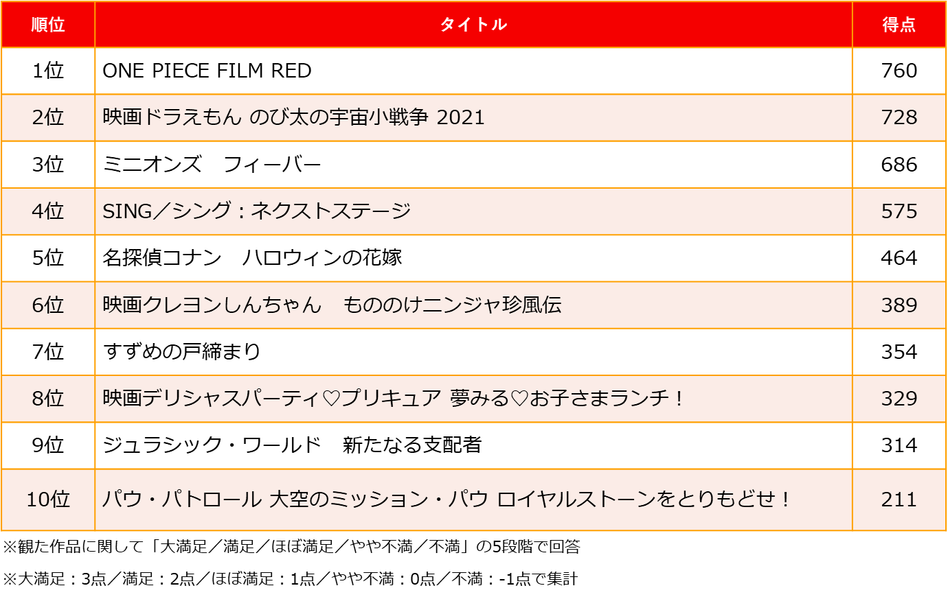 - 2022年劇場公開映画 親子満足度ランキング<未就学児(0歳〜6歳)>