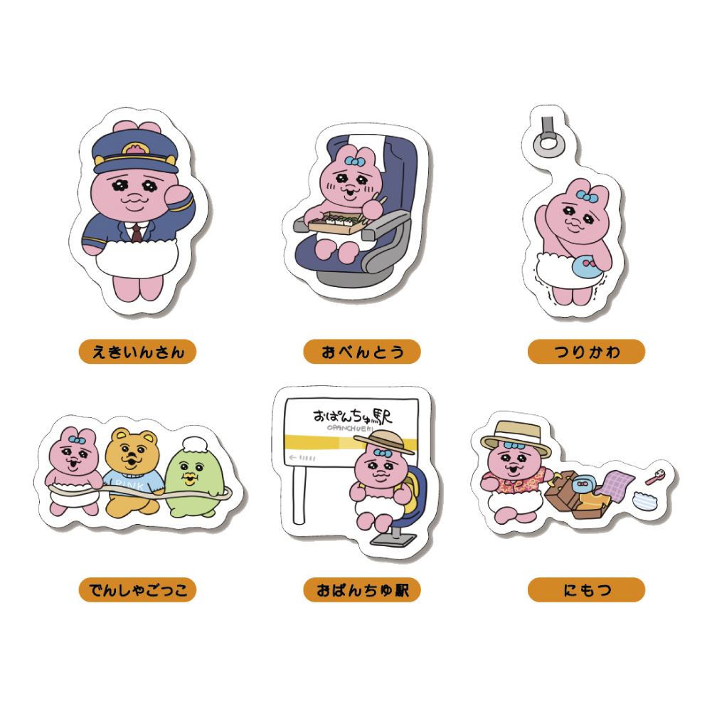 東京・名古屋・京都の3会場全て主要ターミナル駅での開催となる本イベントでは、駅員になった「おぱんちゅうさぎ」など、駅や電車にまつわる描き下ろしイラストをあしらった新商品(約80点)を含む、約170点の商品を販売いたします。