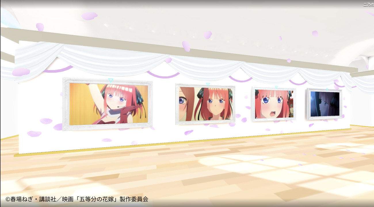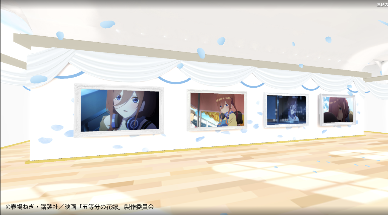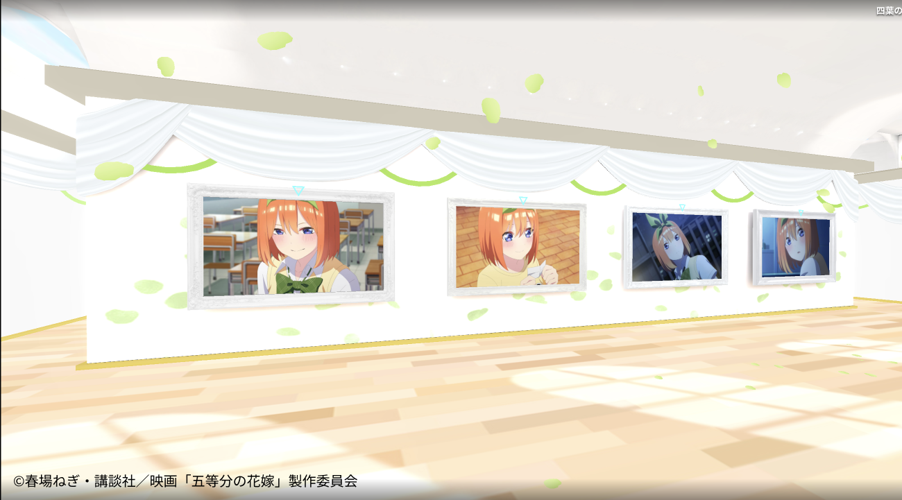 アニメシリーズ『五等分の花嫁』オンライン展覧会では、「一花の部屋-一期-」や「二乃の部屋-二期-」、「三玖の部屋-映画-」などの部屋を通して、五つ子の様々なセリフや心動かす名シーンを振り返ることができます。