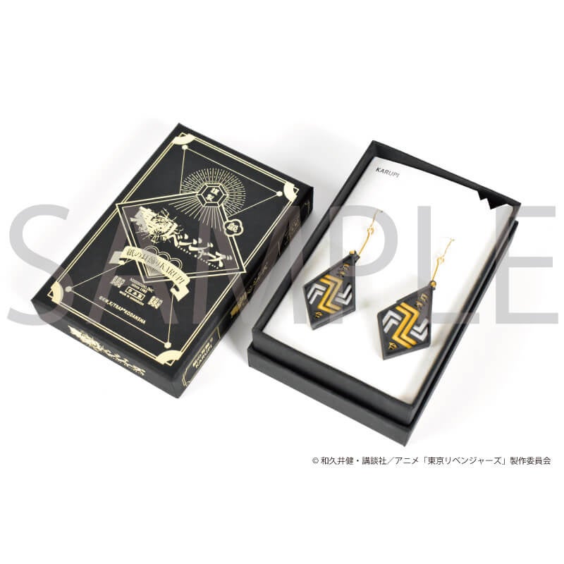 紙ピアス・イヤリングのデザインは、作中のキャラクターたちが所属している“チーム”のロゴをモチーフに。東京卍會、芭流覇羅、黒龍、それぞれ重厚感のある見た目になっています。