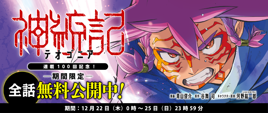 PASH UP!で好評連載中の、異世界転生ダークファンタジー「神統記(テオゴニア )」。この度、連載100話突破・新刊 第9巻(1/6)発売を記念して、本日より12/25 23:59までの4日間、全100話すべてを無料公開! この週末は無料イッキ読みするチャンスです。