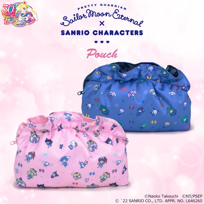 フリルポーチ 全2種(セーラー5戦士×サンリオキャラクターズ柄、スーパーセーラーちびムーン・外部太陽系4戦士×サンリオキャラクターズ柄)